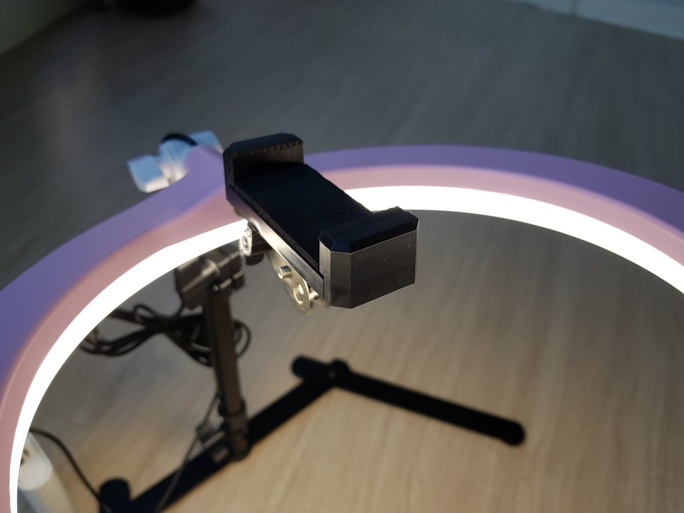 링 라이트 가운데에 있는 거치대 부분에 스마트폰을 연결하면 됩니다.