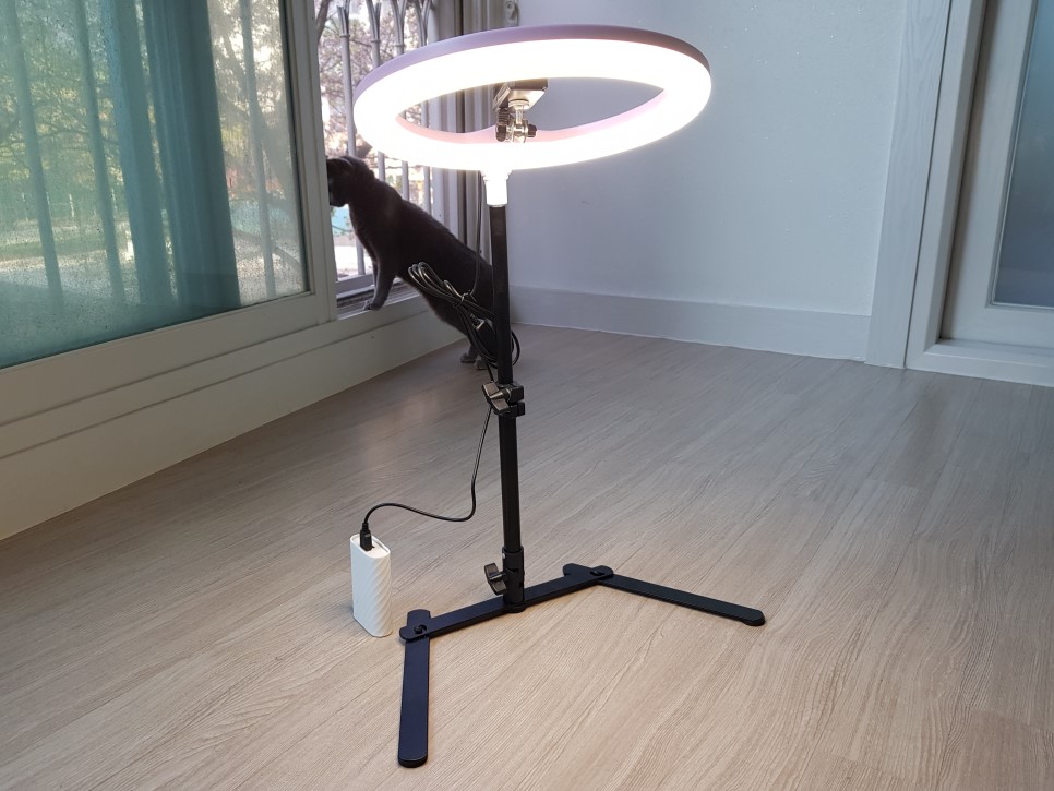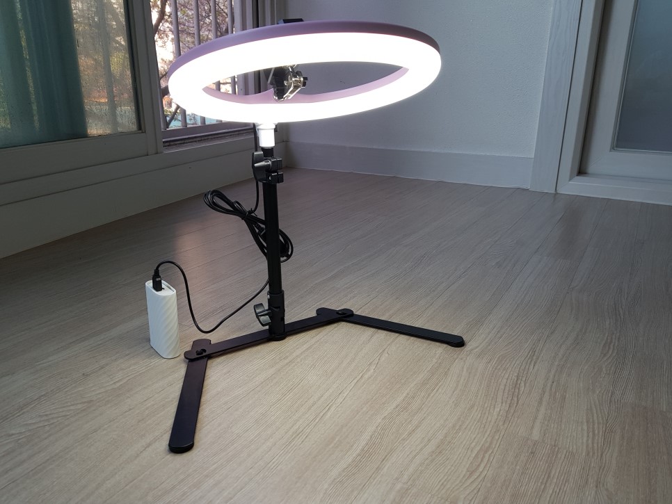 스탠드와 링 라이트 조립 완성 모습입니다.