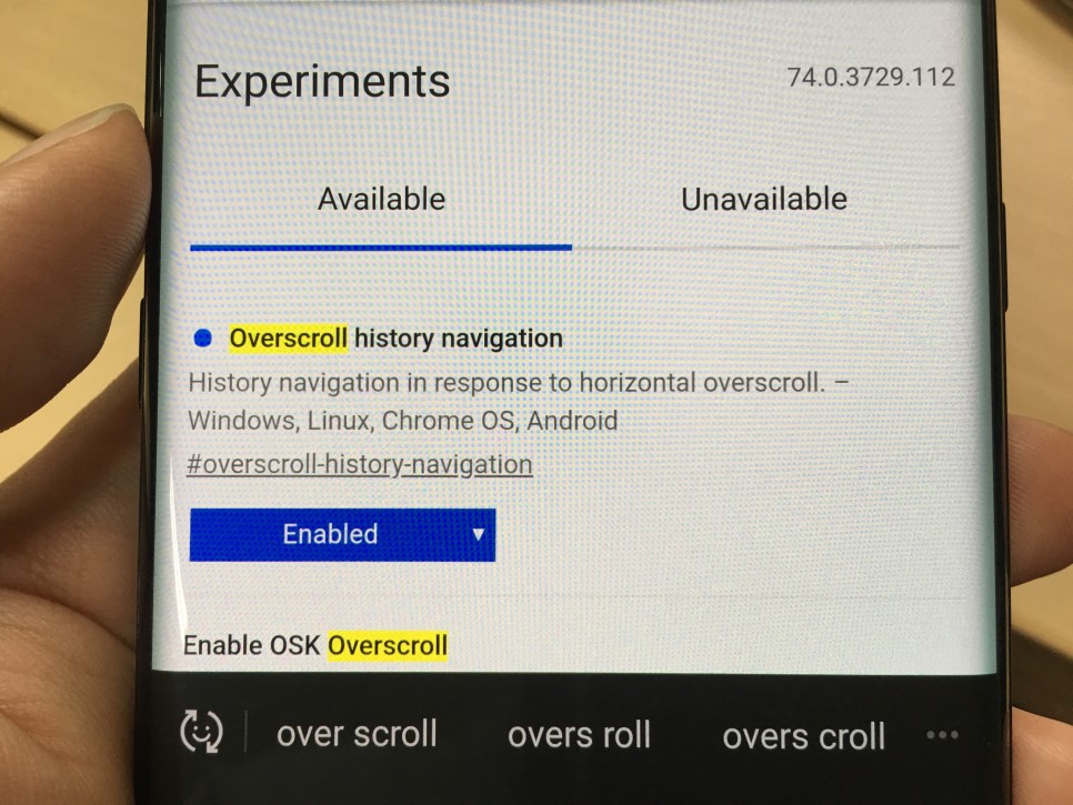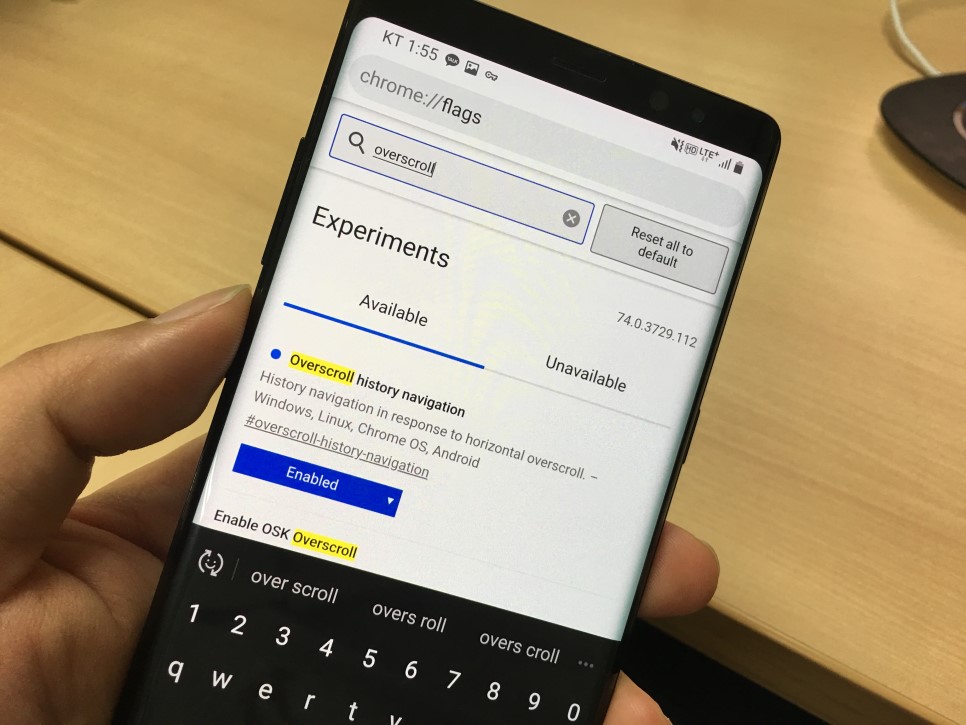 3. overscroll history navigation을 선택하여 활성화(enabled) 시켜줍니다.