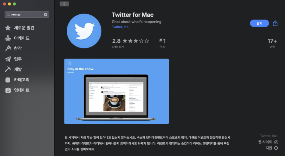 트위터 공식 앱이 Mac App Store에서 사라진지 약 1년 반만이다.