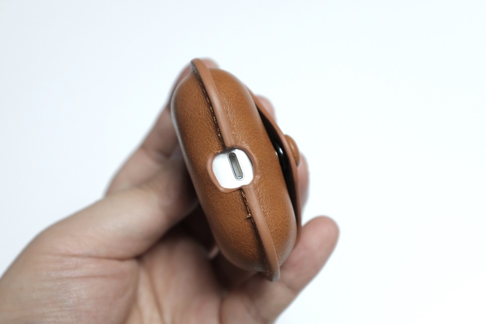뒷면에 버튼 부분도 구멍이 뚫려 있어 타 기기 페어링 시 에어팟 프로를 케이스에서 꺼내지 않고 사용이 가능합니다.