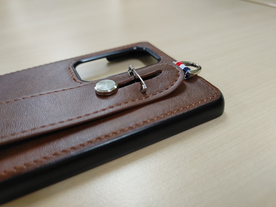 이 케이스의 스트랩은 아쉽게도 지나치게 많이 벌어져서 손가락에 고정되지가 않아요 (서양 사람들 손크기를 기준으로 한 건가 싶기도 하고..).