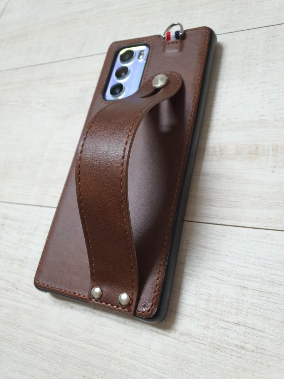 알리를 뒤지다가 핸드 스트랩이 붙어 있는 가죽으로 된 케이스를 하나 찾았습니다.