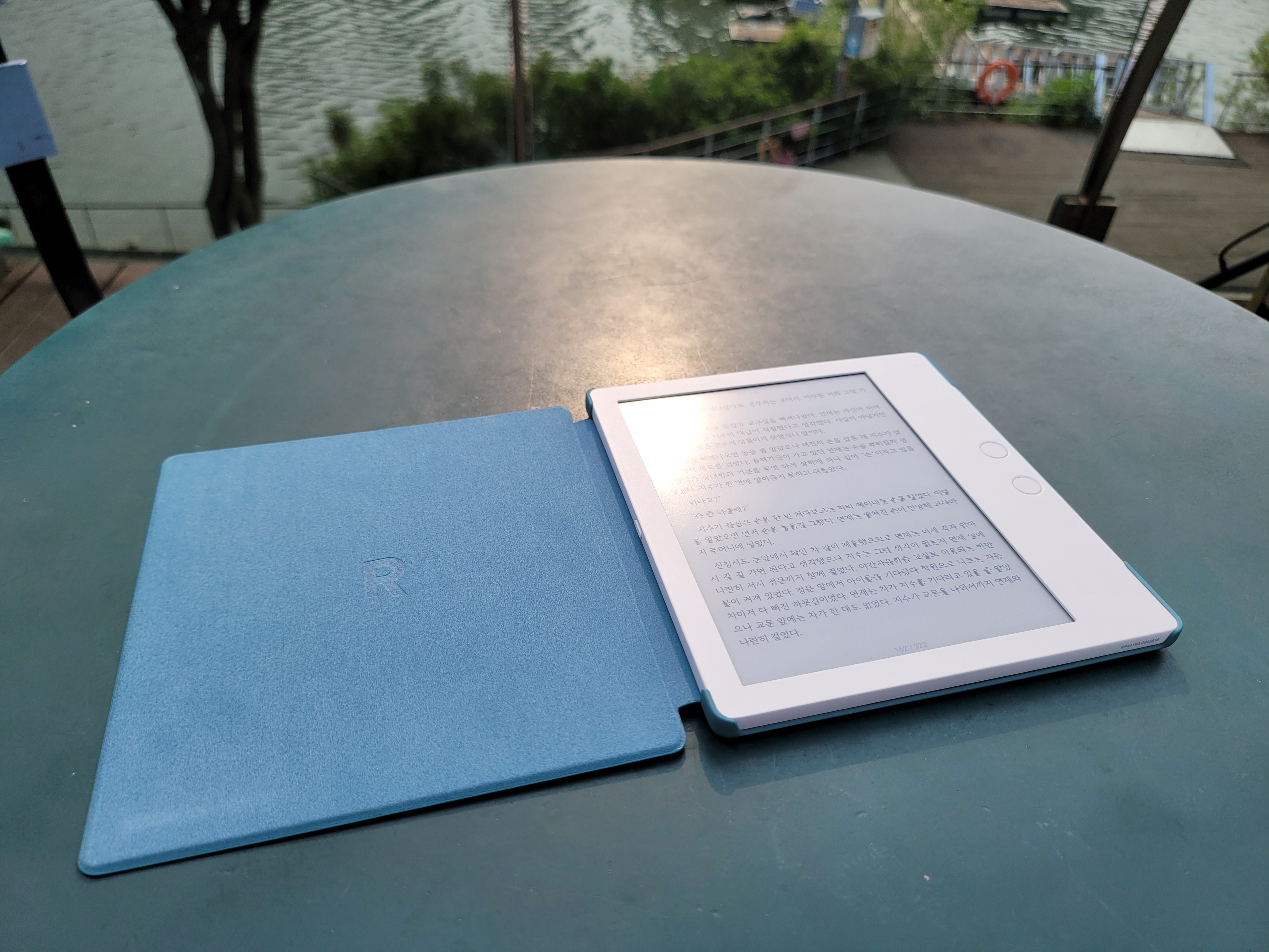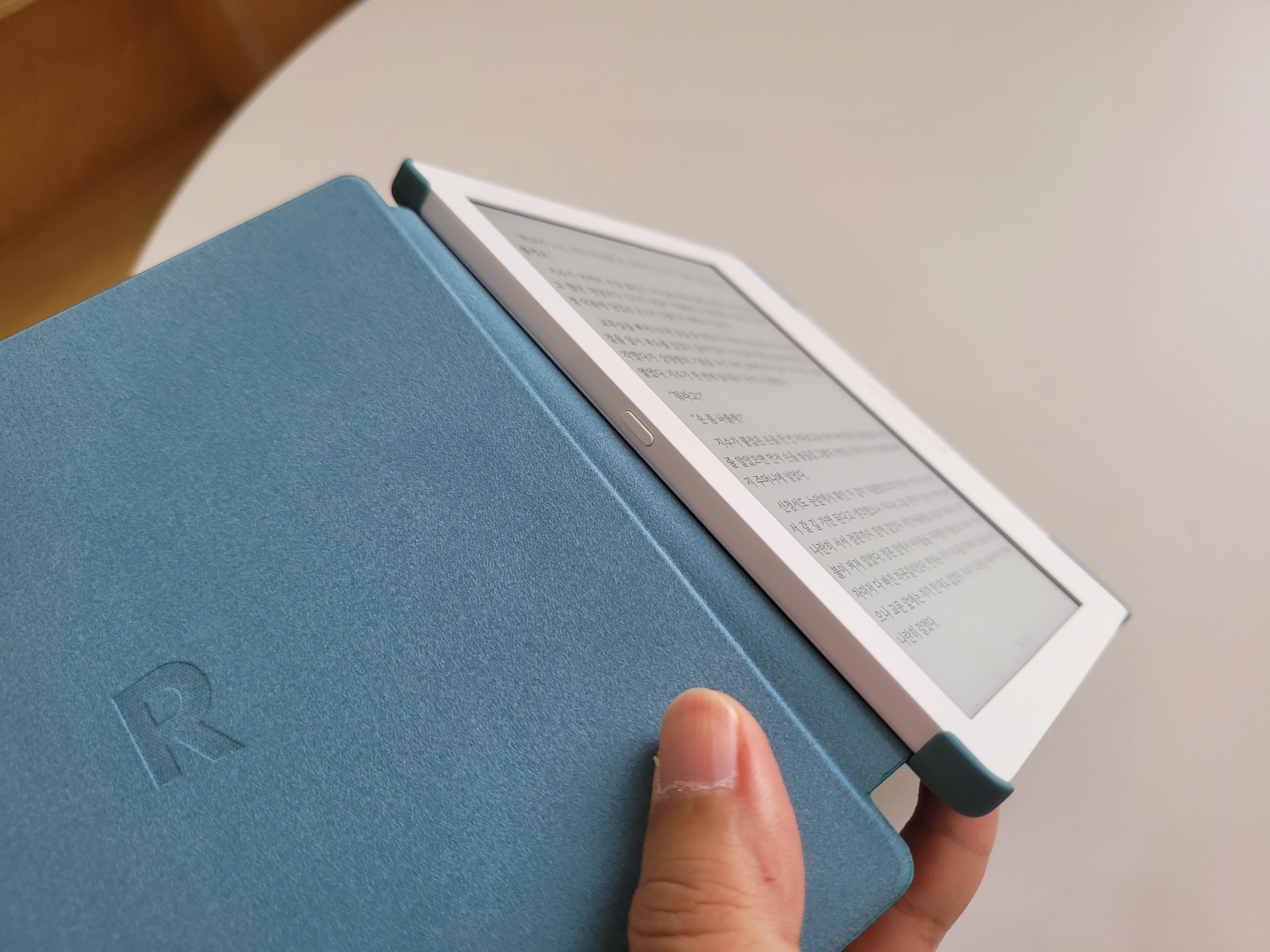 케이스 무게는 약 500g 정도로 매우 가벼워서 케이스를 사용하더라도 한 손으로 장시간 들고 독서를 하기에 부담이 없다.